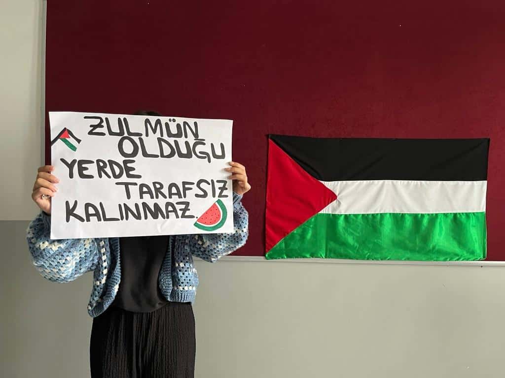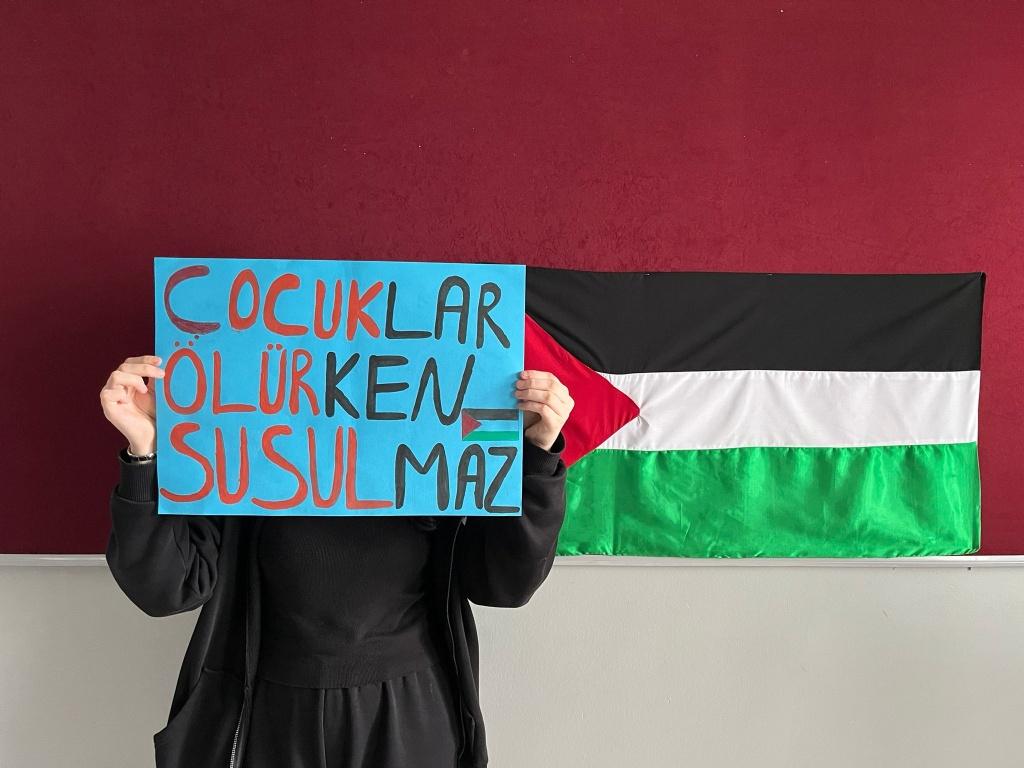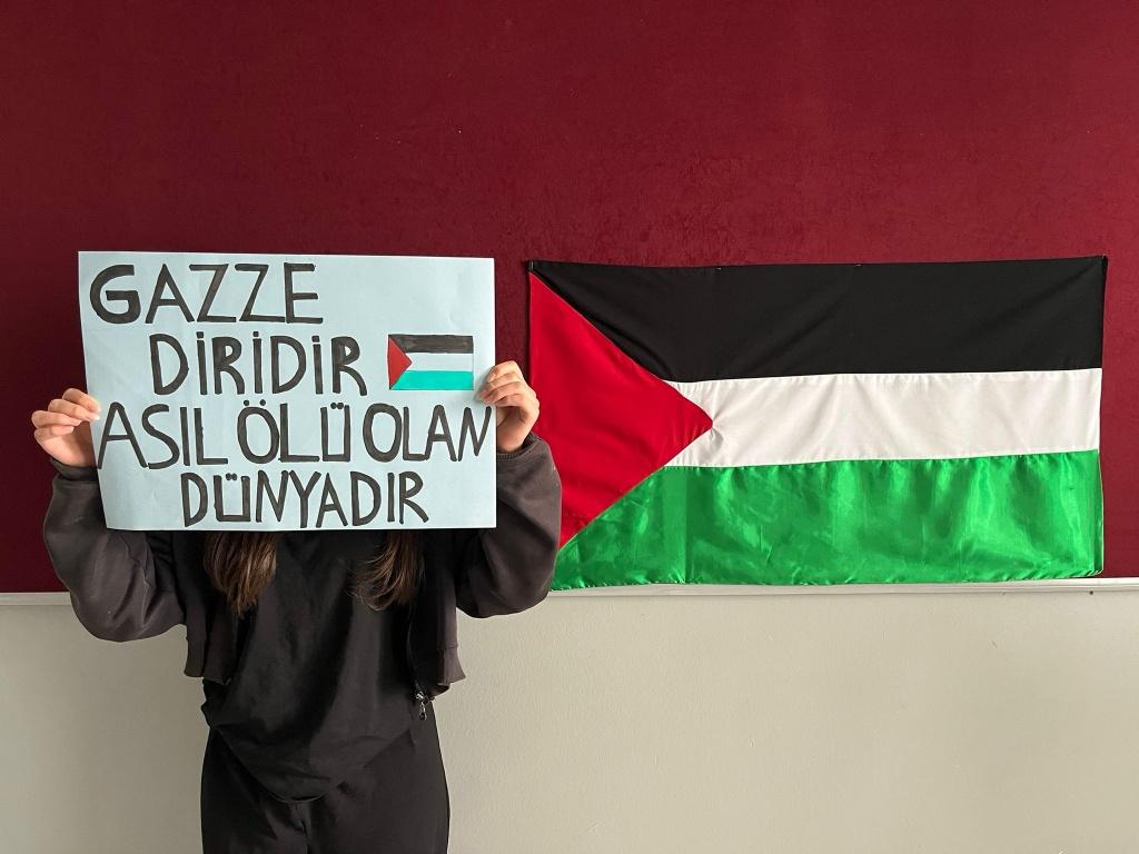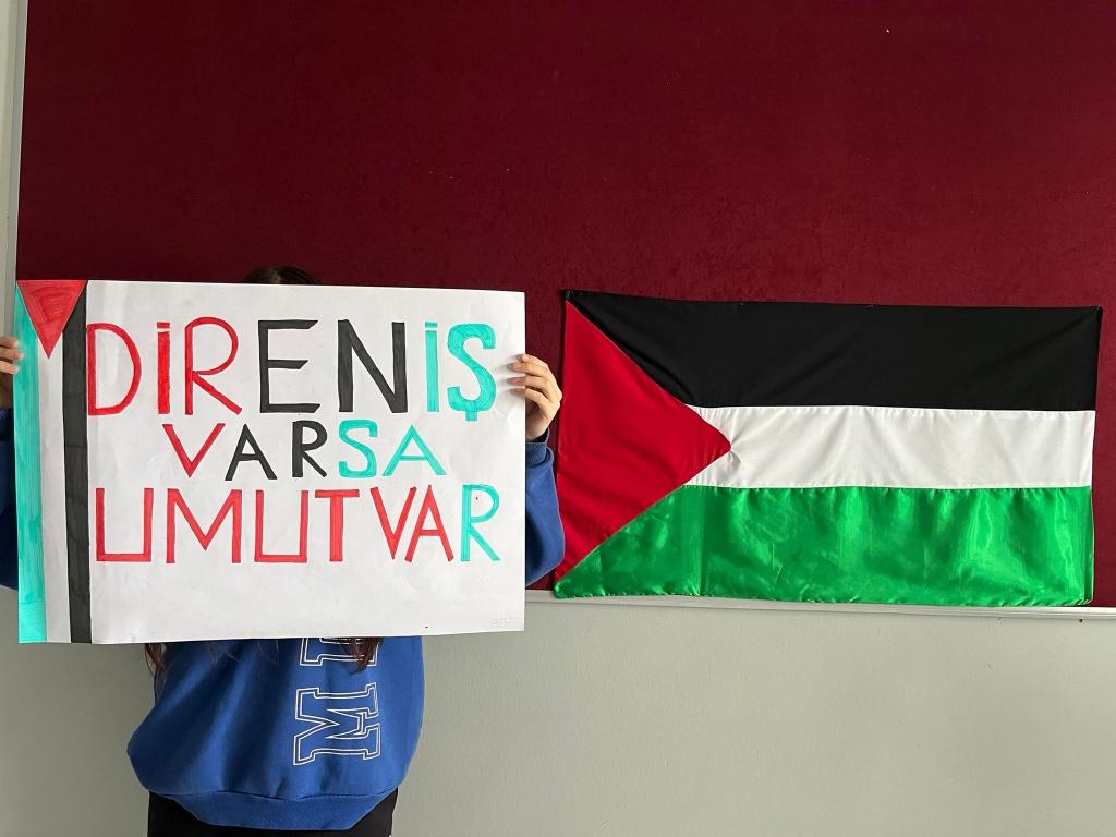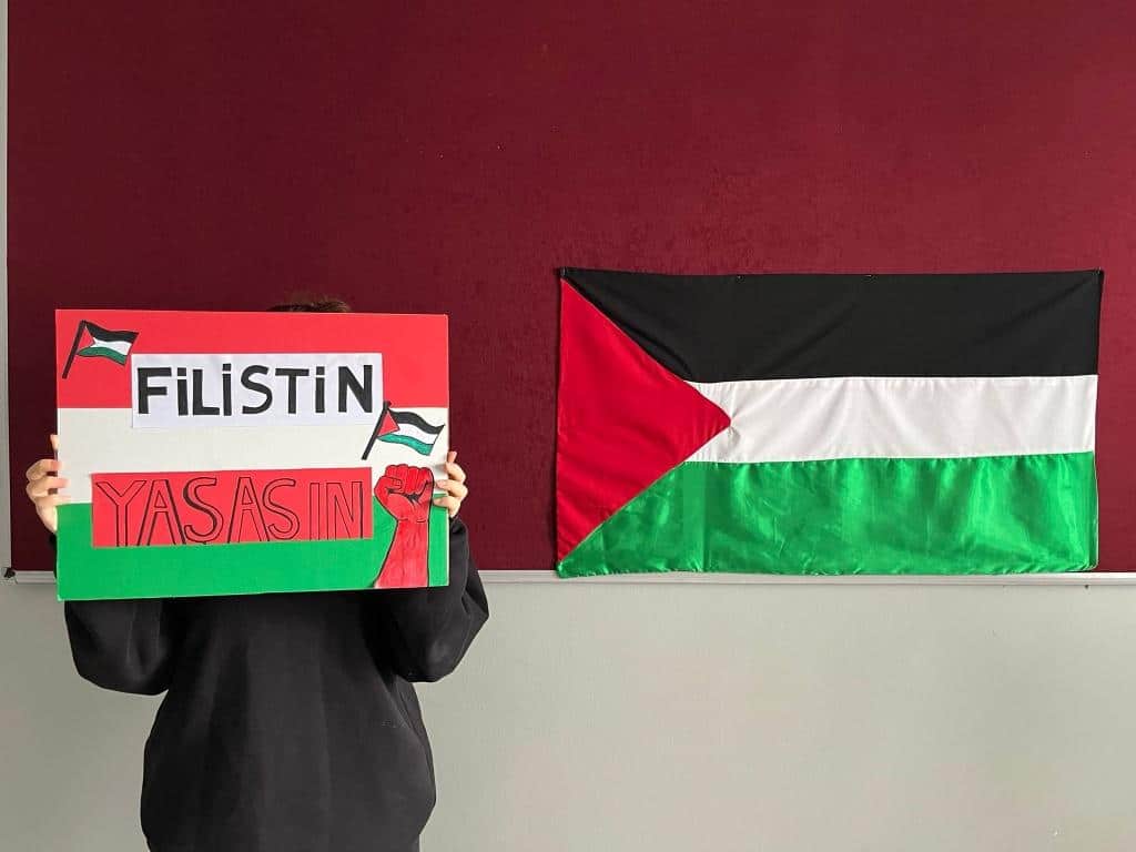 Okulumuzda, Filistin halkına destek olmak ve öğrencilerimizde barış, empati ve insanlık bilinci oluşturmak amacıyla çeşitli etkinlikler düzenlendi. Öğrencilerimiz; afiş, pano, bayrak dikimi gibi çalışmalarıyla Filistin’e olan duygu ve düşüncelerini ifade ettiler.